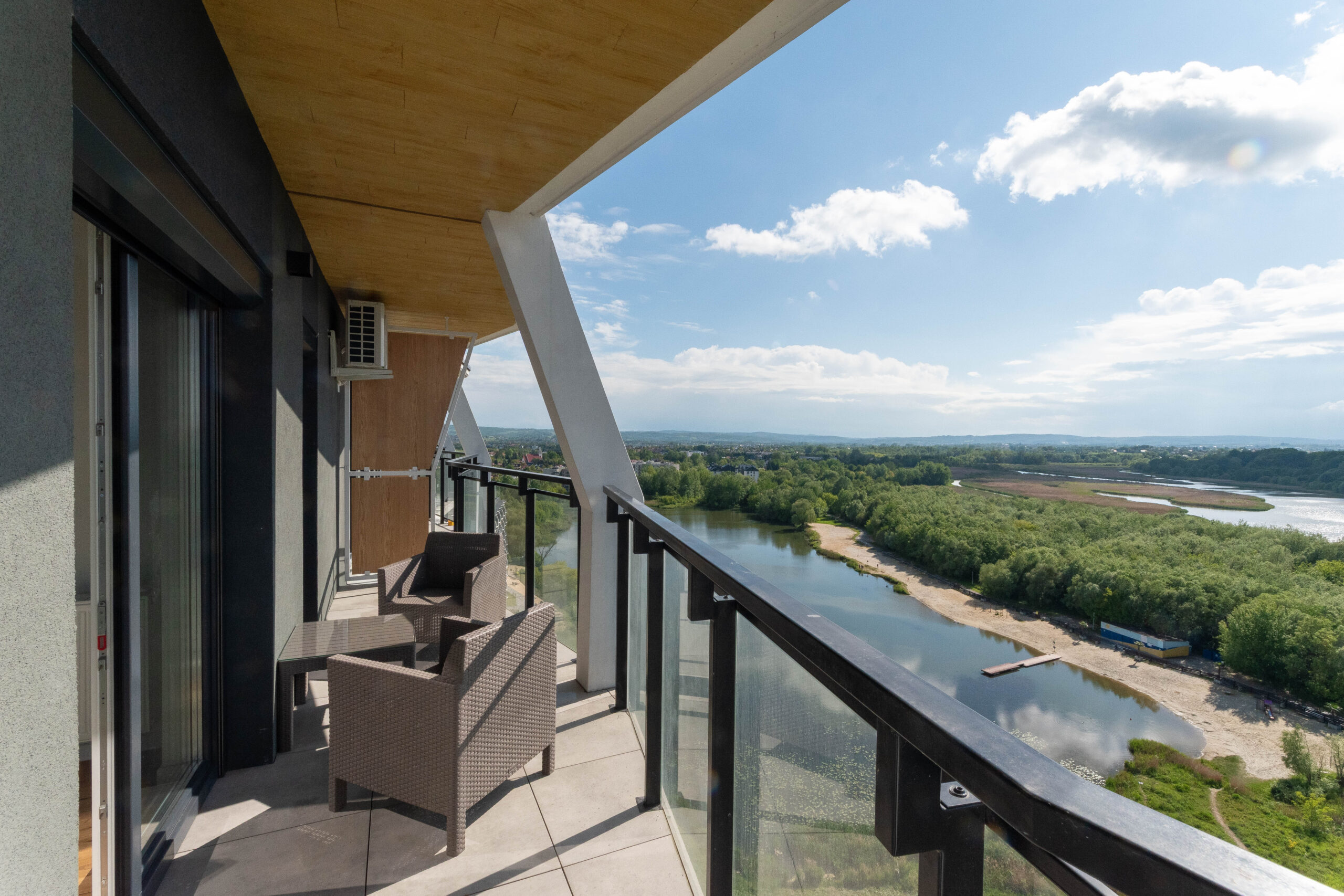 ➡️ 2 widokowe balkony – jeden z widokiem na wodę, drugi z widokiem na panoramę miasta.