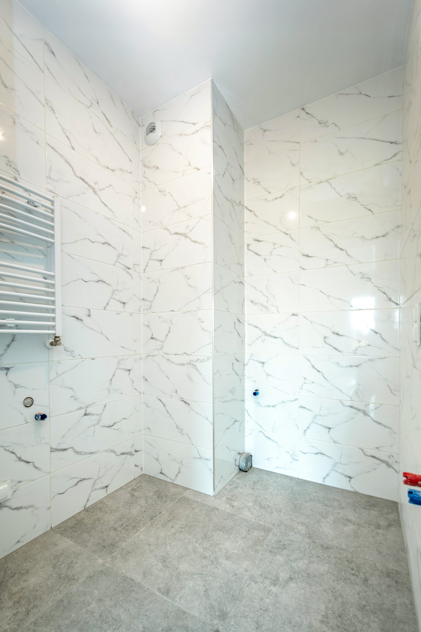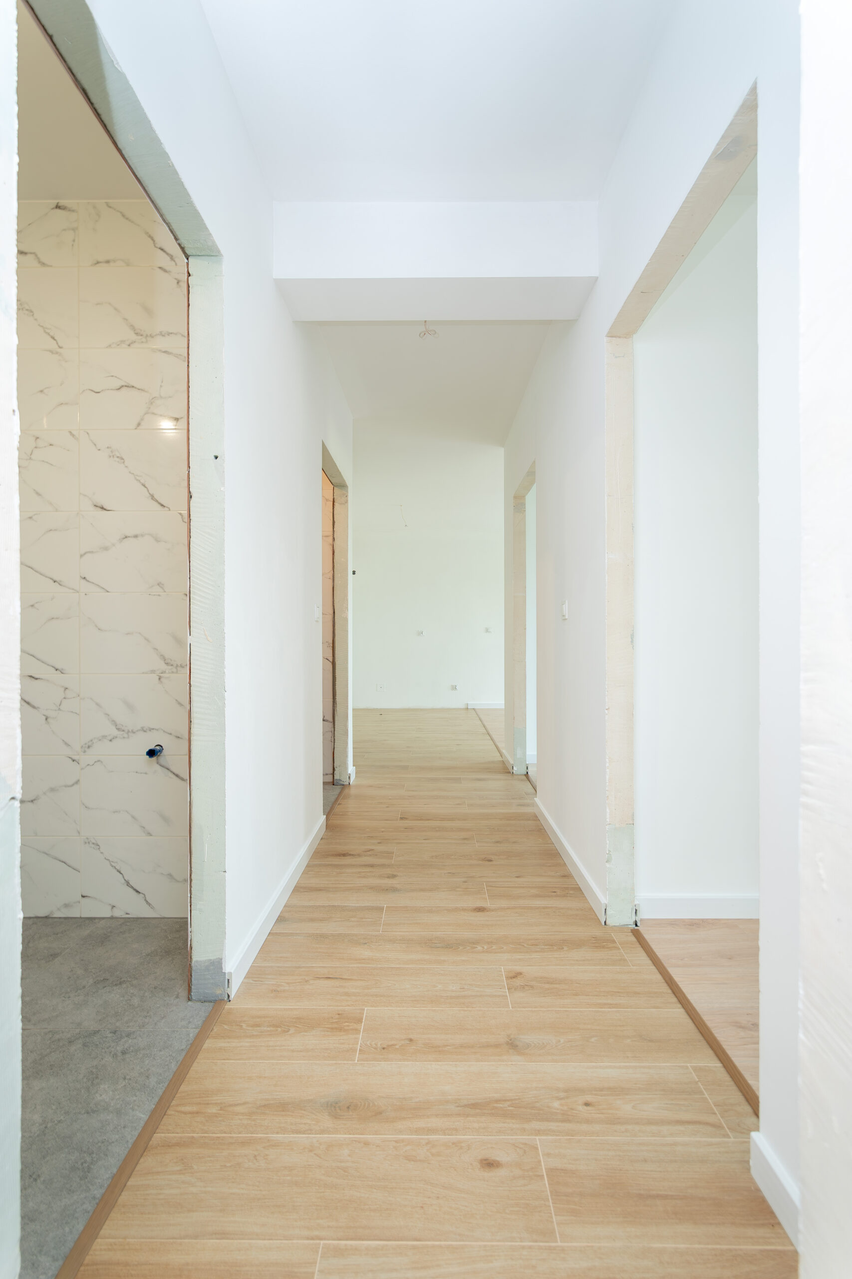 Mieszkanie sprzedawane jest w stanie częściowo wykończonym. Wykonane zostały podłogi oraz łazienki (bez armatury i białego montażu).